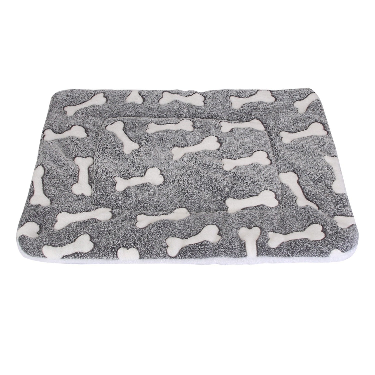 Home > Dog Bed Mat Comfortable Flannel Dog Crate Pad Reversible Cushion Carpet Machine Washable Pet Bed Liner with Bone Patterns